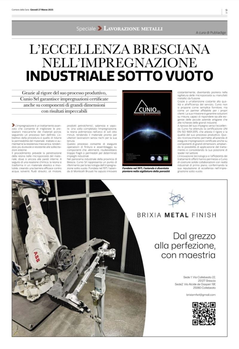 Settimana scorsa eravamo presenti sul Corriere della Sera, nello speciale dedicato alla lavorazione dei metalli.Dal grezzo alla perfezione, con maestria.