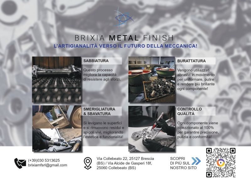 Da Brixia Metal Finish ogni componente segue un processo su misura: sabbiatura, burattatura, smerigliatura e controllo qualità vengono applicati in base alle reali esigenze del pezzo.